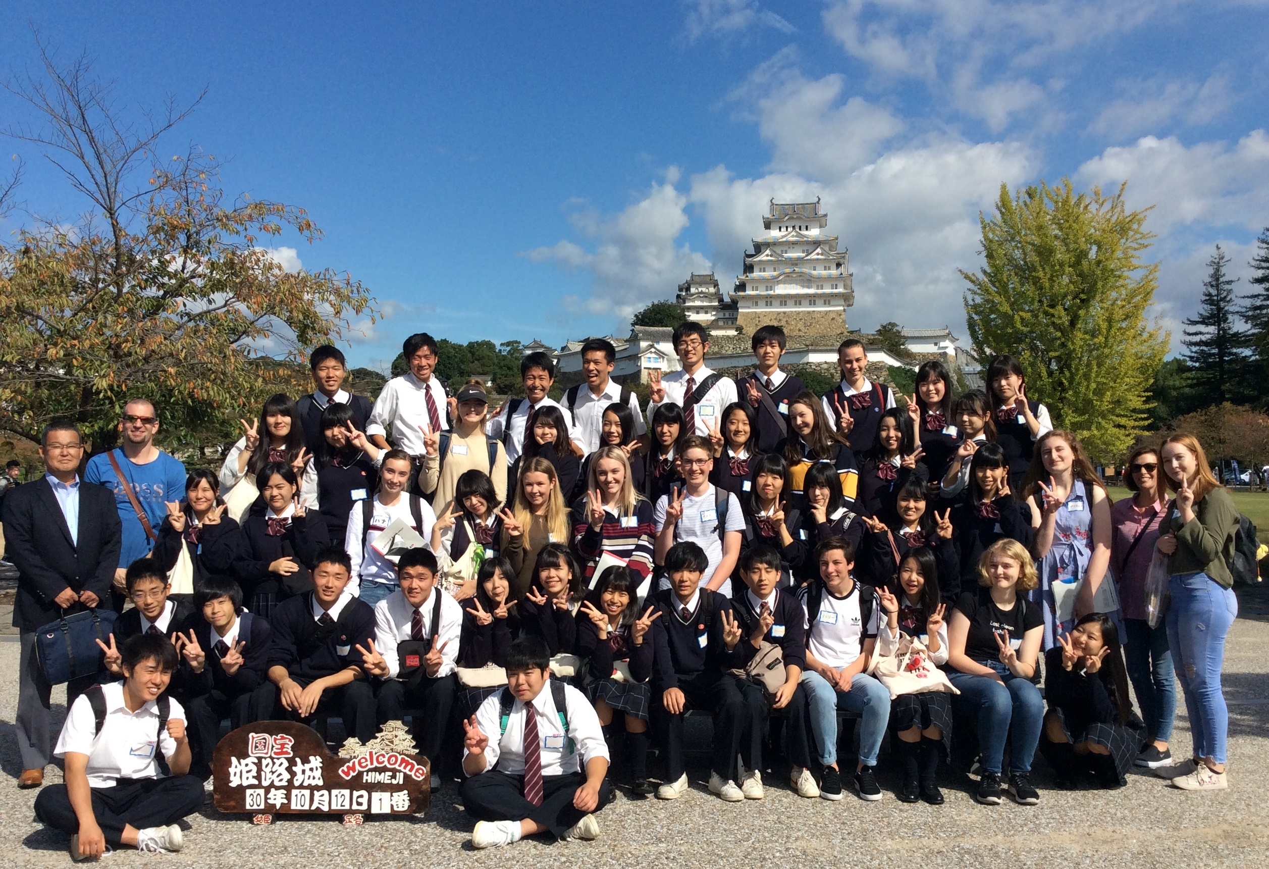 10月12日(金)に3年生国際会計科の生徒が文化交流の一環としてスタディーツアーを実施し南オーストラリア州のフェイスルーテル高校からの修学旅行生10名を迎え、各グループ4~5名で事前に計画した行程をもとに、姫路城を散策しました。姫路城を見学した後自分たちで選んだ店で昼食をとってその後は集合時間まで班ごとに行動しました。また事前に与えられたミッションを達成すべく、持っている知識をフル活用してコミュニケーションを取りながら交流する様子が見受けられました。今回の交流は3年間の集大成で、3年間を通して台湾、オーストラリア、ネパール、アメリカ、ベトナム、マレーシアの方々と行った交流の経験や反省を生かした素晴らしい文化交流になりました。 1年生の時に台湾の高校生と交流をした時、何をすれば良いか分からなかった生徒たちが、今回の交流では自分たちで考えて動いている姿を見て大きな成長を感じました。様々な失敗や反省を通してそれぞれが学び、考えた結果だと思います。国際交流には様々な解釈がありますが本校生徒が3年間の交流を通して、相手の立場になって考えることを学び、彼らの中におもてなしの心が芽生えていることに大きな成長を感じました。卒業後も異文化交流の機会を多く持つ生徒も多くいると思います。そんな時、明商での経験をどこかで生かすことが出来ればこれらの交流がより一層意味のあるものになるでしょう。今後も国際会計科として様々な体験の場を提供できればと思います。 以下、本日の交流のミッションです。 ①グループでFaithの生徒に若者言葉と関西弁を教える。日常生活での使い方を教えるためにスクリプトを作成し、実践をする。教えている所を動画に撮って提出。 ②英語の文章を書き取ってもらう。 ③いただきます・ごちそうさまを教える ④街中を歩いている日本人にFaithの生徒が日本語でインタビューをする(お願いは明商生がしてもFaithの生徒がしてもOK) ⑤お互いの国のお菓子交換 ⑥お土産を準備して、英語で説明する!(お菓子でも物でもOK)
