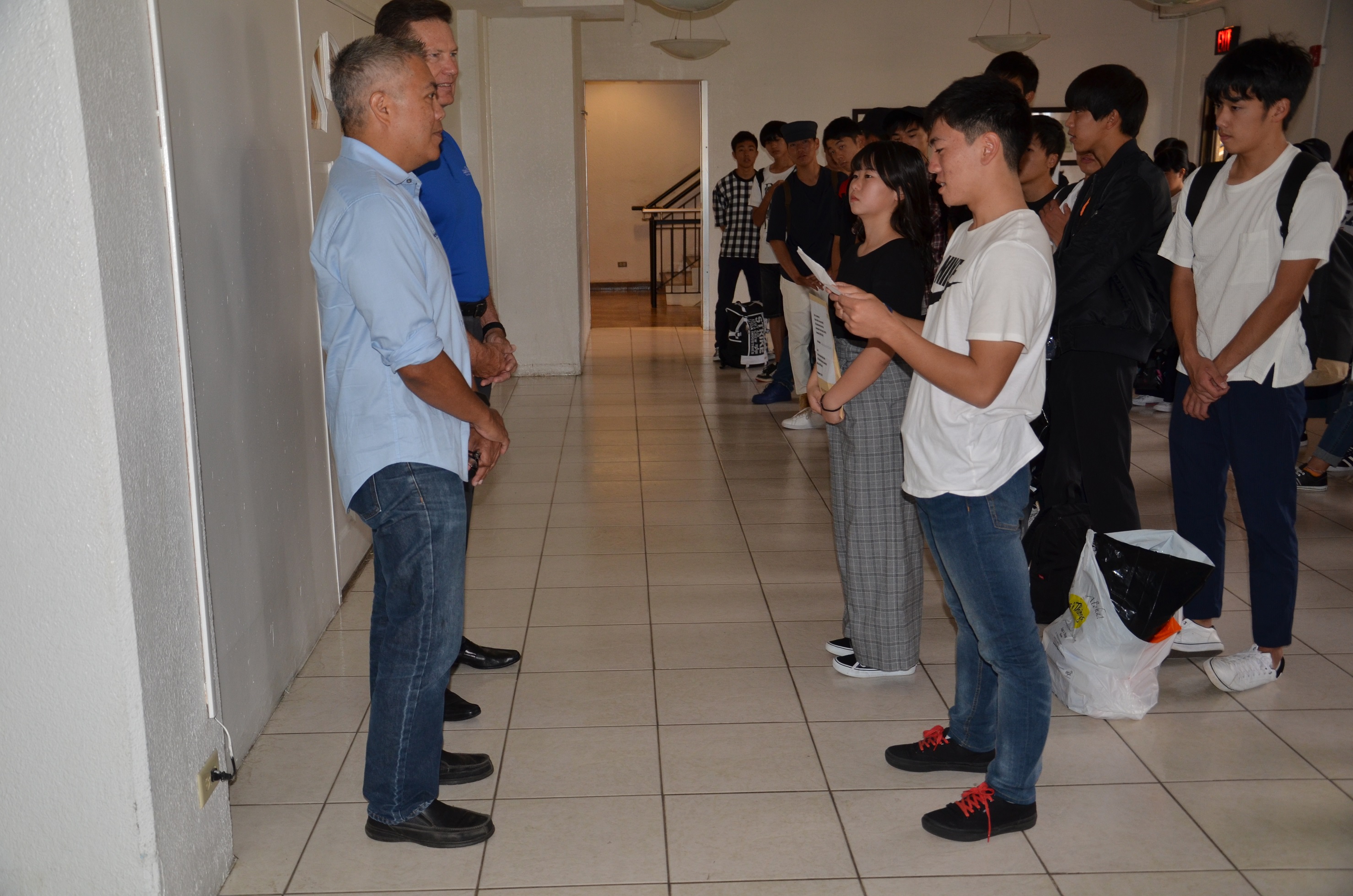 今日はいよいよグアム修学旅行の最終日、9:00にメイク・ア・ウィシュ財団の方にホテルまで来ていただき、一昨日の夜、チャモロ・ビレッジ・ナイト・マーケットでの売上金の内経費を差し引いた218ドルを寄付することができました。(左写真)同財団は、難病の子供たちの願いを叶える活動をされています。その後、荷物を持ってホテルをチェックアウトしました。一路アプガン砦へ、ここはスペイン統治時代、チャモロ族の反乱に備えて建てたスペイン軍の拠点跡です。現在設置されている3基の大砲はレプリカです。次に訪問したのはスペイン広場です。ここはグアム行政府や議事堂など数々の政府機関が集まるハガニア地区の中心にあり、スペイン統治時代の史跡が残る所です。そしてグアムの観光スポットの定番、恋人岬へ向かい美しい景色に感動すると同時に、岬にある「アマンテス像」の由来である、切ない恋の伝説も聞くことができました。そして、グアム最後の訪問地であるマイクロネシア・モールへ。ここはグアム最大級のショッピングモールです。モール内には遊園地や映画館、巨大なフードコートやスーパーマーケットなど沢山の商業施設があります。モール内のフードコートで各自の英語力を駆使しながら昼食を食べ、最後のショッピングもできました。14:00にはバスに乗りグアム国際空港へ、出国手続きには少し時間がかかりましが、いよいよグアムともお別れです。色々な経験や体験をして、高校生活最高の思い出となったことと思います。忘れ物は残さないように最高の思い出だけを残して、全員無事に帰国する事ができました。