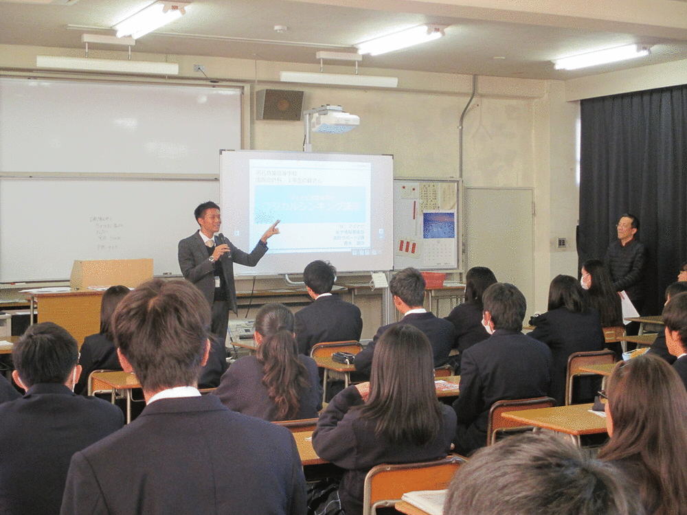 「分かる」と「できる」は違うということを実際に体験した後、論理的思考力を身に付ける方法を実践しました。与えられたテーマをもとに、5W2HやPDCAなどの考え方のヒントをもらいながら自由な発想でアイデアを出し合い、発表しました。