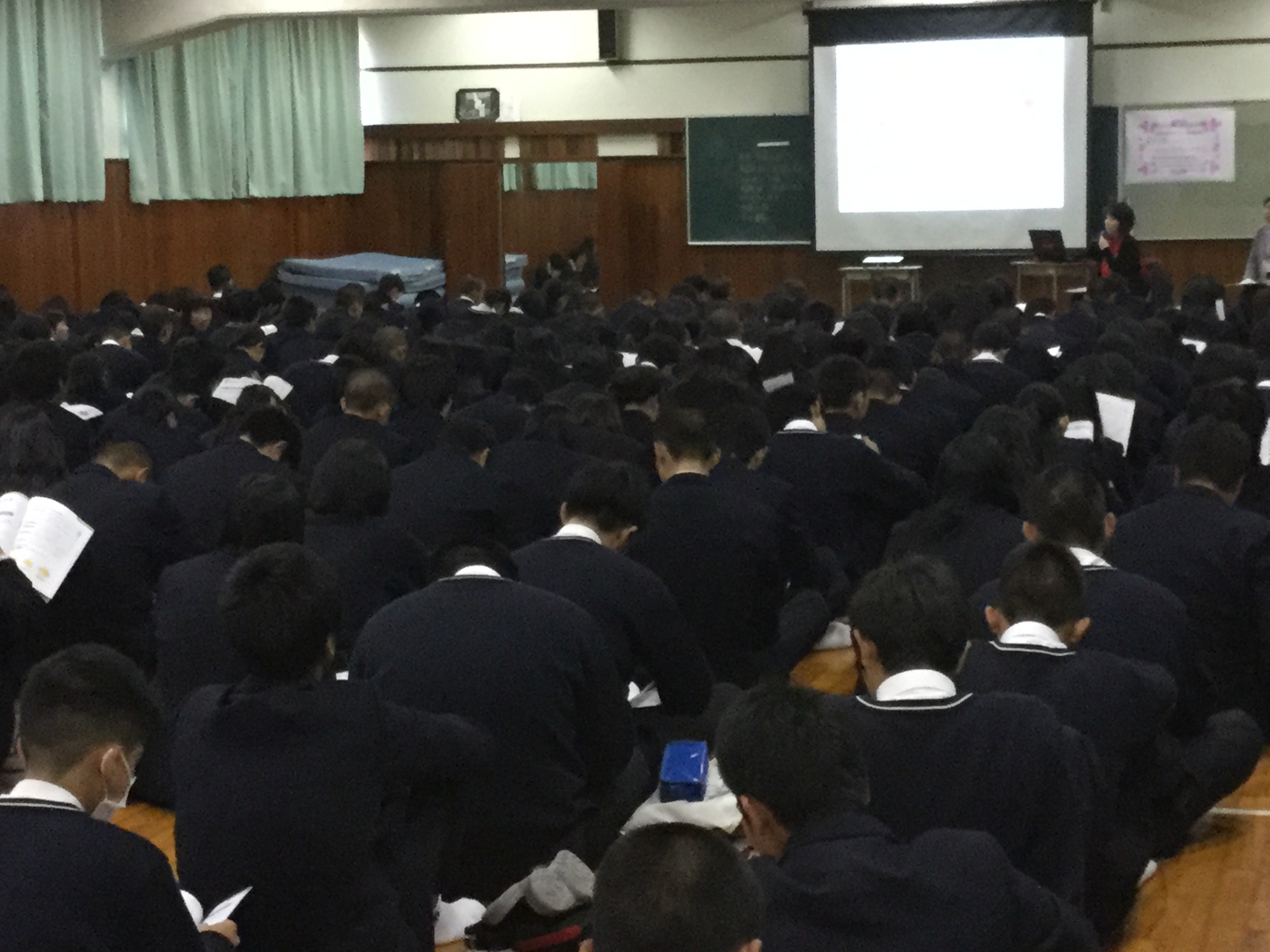 11月7日(火)6時間目の2年生の人権ホームルームにおいて、第1回の「認知症サポーター養成講座」が開催されました。 講師を務めてくださった魚住東在宅介護支援センター、明石市医師会地域包括センター、ふたみ在宅介護支援センターのキャラバンメイトさんがわかりやすく、認知症の事例を動画を使って説明してくださり、若年性認知症のご家族へのインタビューもあり、「もし、自分の家族が・・・」と親身になって考えることができたと思います。 生徒たちは、身近な事例と動画などを通じて具体的な例で認知症を学ぶという貴重な学習ができたと思います。お世話になった皆さま、たいへんご苦労様でした。第2回もよろしくお願いします。