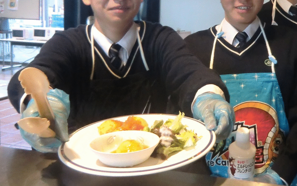 11月11日と12日、流通科学大学の学園祭「りゅうか祭」にて高大連携企画として製作されたメニュー「明石タコランチ」と「明石のりランチ」を販売し、好評を得ました。 林先生と空山先生が担当している課題研究では、大学生と協力しながら商品開発を行っており、当日は、履修者がシフトを組んで合計300食を販売しました。 参加した3年生斎藤 蓮君は「お客さまと会話をしながら実際に販売活動を行うことで、今まで商業高校で学んできたことを発揮することができました。お客様の笑顔が見られて幸せでした。」と話しました。 本校と流通科学大学は、2015年に「高大連携協定」を締結しており、講座や課外活動を含んだ教育プログラムの提供と、学生・生徒の交流、教員の派遣、教員の研修、施設利用など多様な接点で相互交流を行っています。