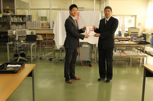 2月8日(木)重盛さと美さん出演のCMでおなじみの株式会社タツミコーポレーション様と株式会社山陰合同銀行様の連名で、液晶テレビを本校に寄贈していただきましたので、本日、図書館にて受贈式並びに感謝状贈呈式を執り行いました。
