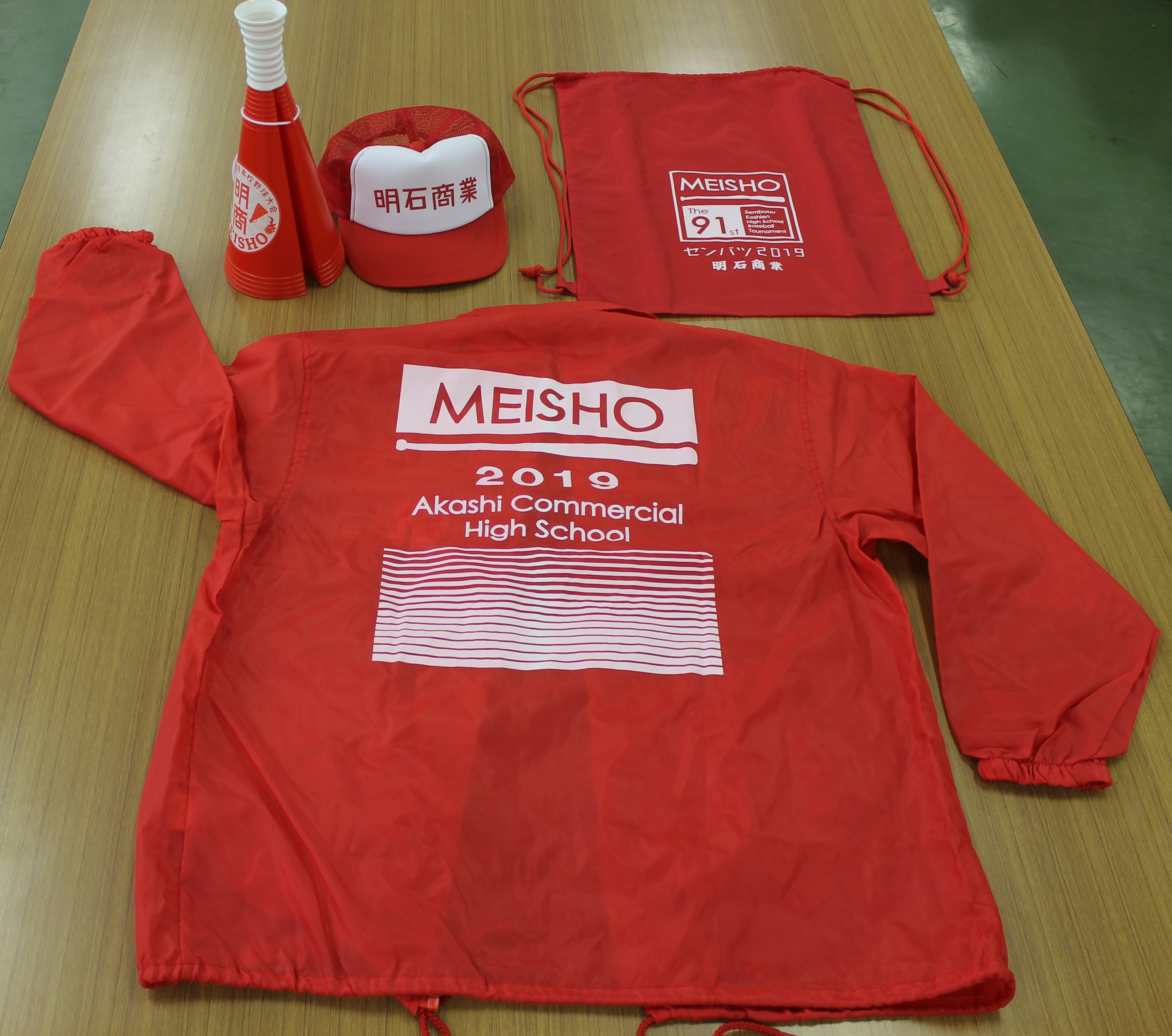 皆さまからのご厚志をもとに購入したウィンドブレーカー、帽子、ナップサックを、3月18日(月)、Wメガホンを3月20日(水)に在校生に配布させていただきました。 さっそく、20日(水)にメガホンを使って応援練習を行いました。