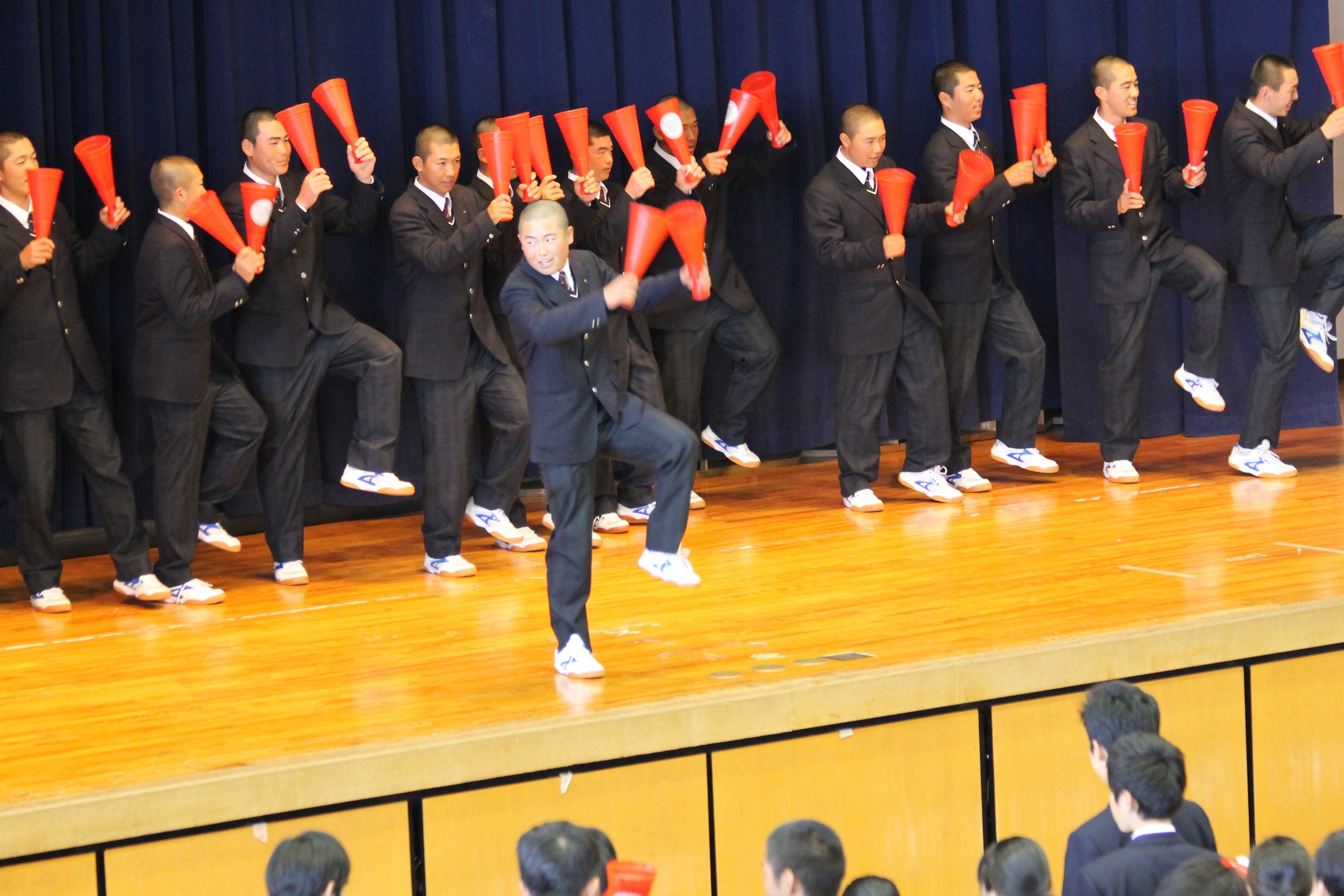 3月20日(水)、体育館にてセンバツに出場する野球部の応援練習を行いました。