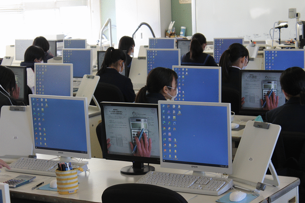 生徒会役員によるパワーポイントを利用した学校紹介等のあと、商業科の授業体験では電卓とExcelの2つの授業、国際会計科の授業体験で商業科目を中心に授業を体験しました。その後、希望者は部活動見学・体験を行いました。