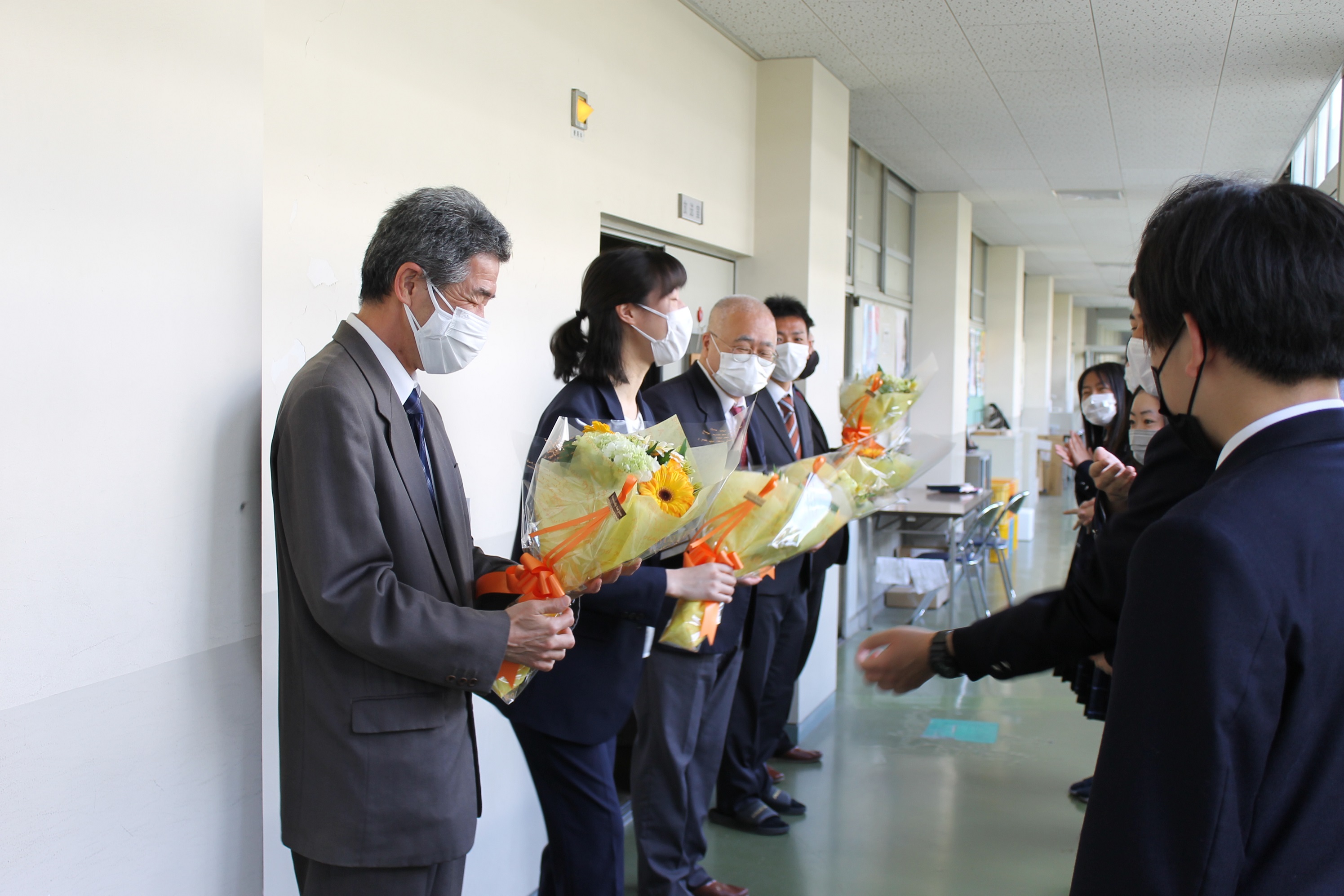 最後に、放送室前で生徒会役員からお別れの花束を渡し名残を惜しみました。