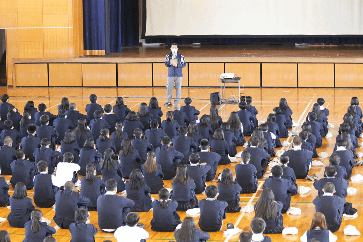 4月13日(水)午前9時より体育館にて、1・2年生を対象に自転車の安全な乗り方、加害者にならない乗り方、交通ルールと交通マナーなどを明石警察署の講師より講話していただきました。