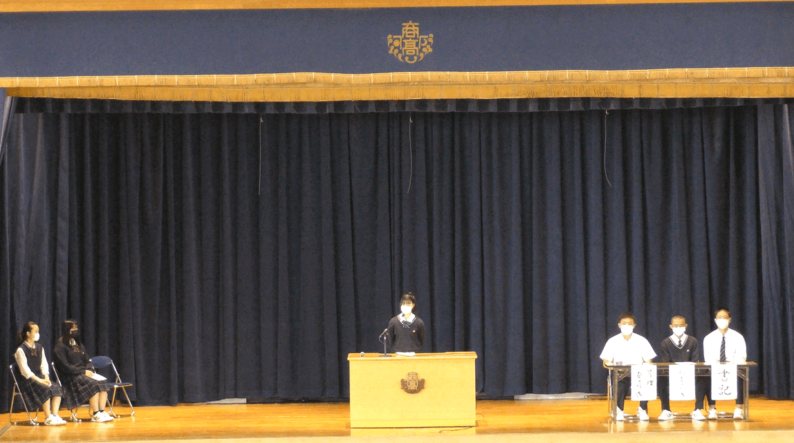 5月25日(木)6時間目のあと、体育館にて、原田さんを選挙管理委員長、川上さんを選挙管理副委員長、砥川さんを書記とした選挙管理委員会のもとで生徒会選挙が行われました。