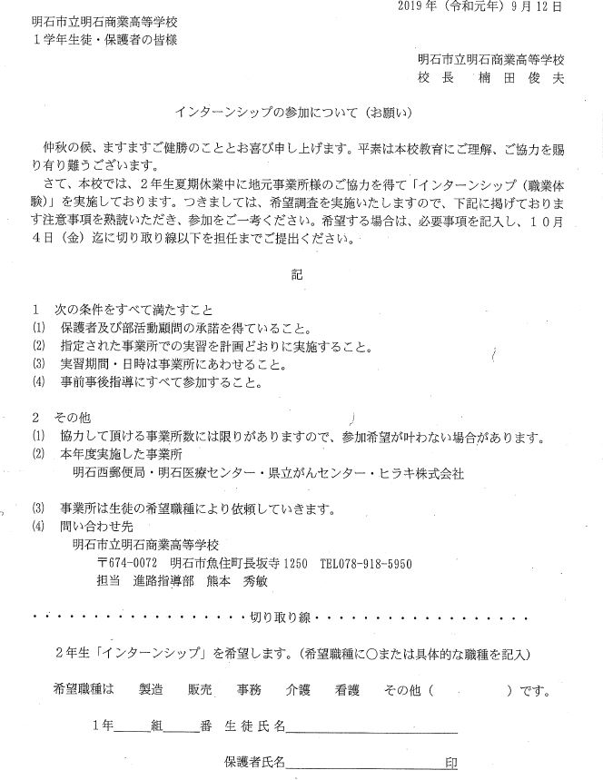 インターンシップの参加について(お願い)