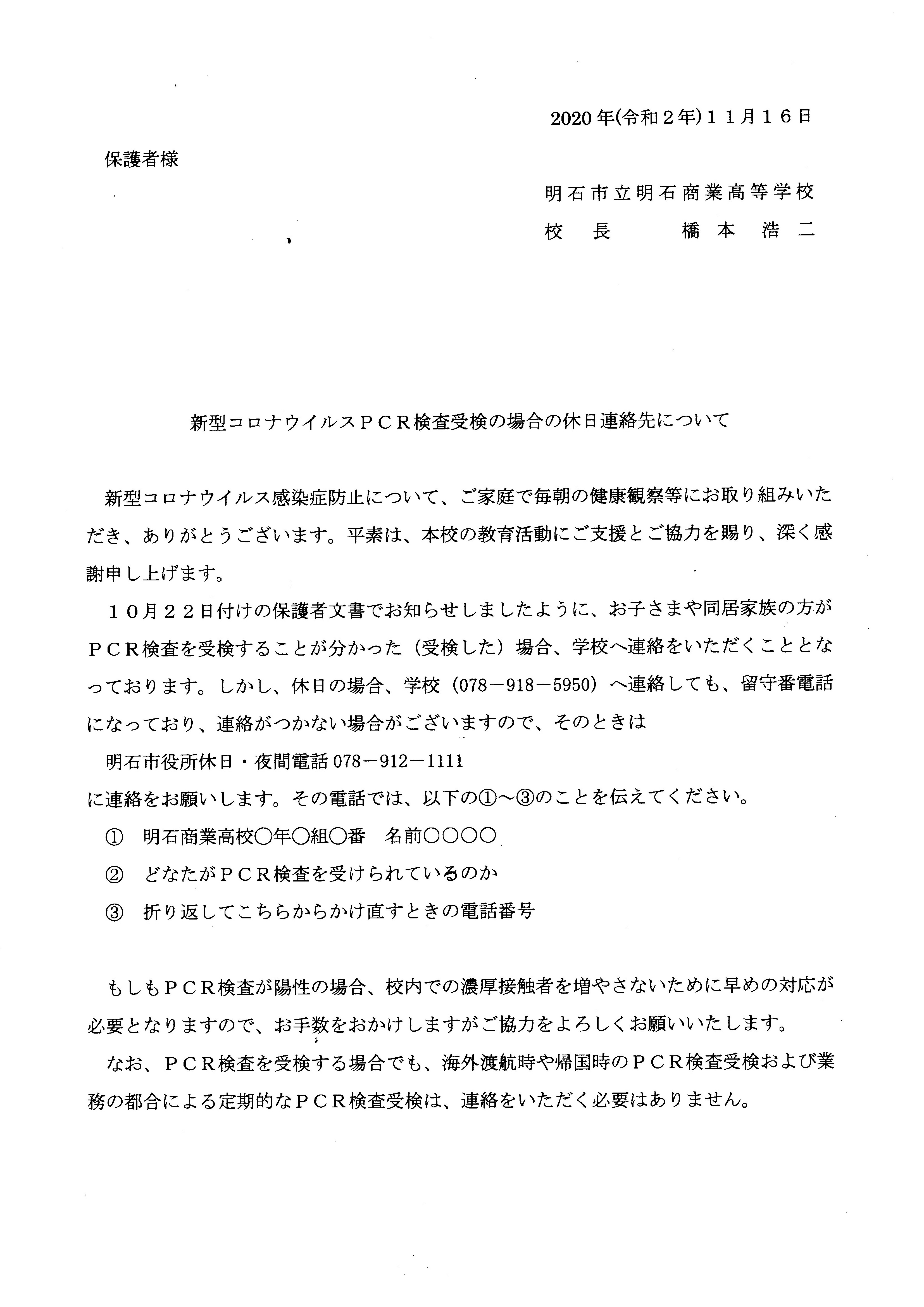 新型コロナウイルスPCR検査受検の場合の休日連絡先について(PDF:56KB)