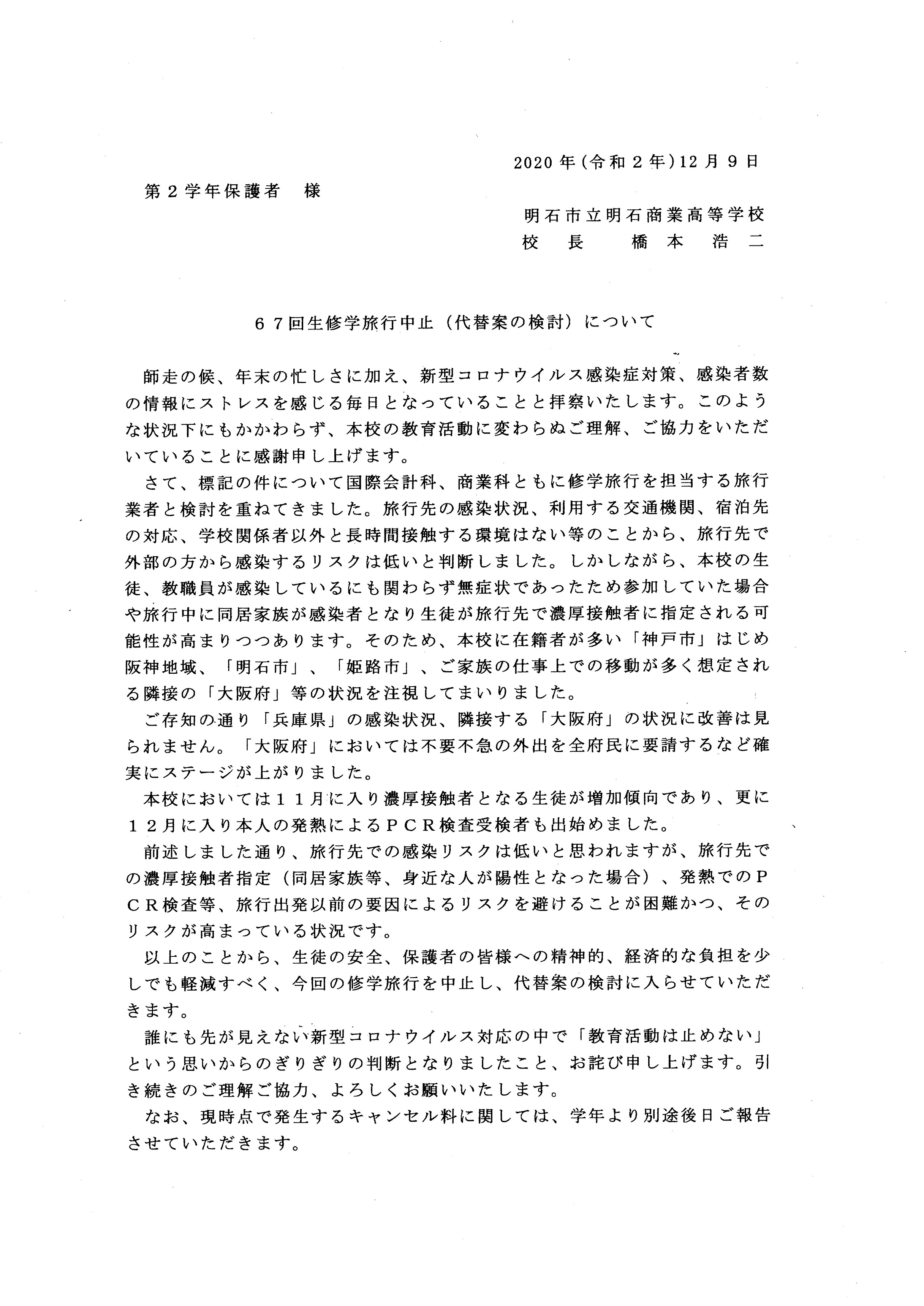 修学旅行の中止(代替案の検討)について (PDF:126KB)