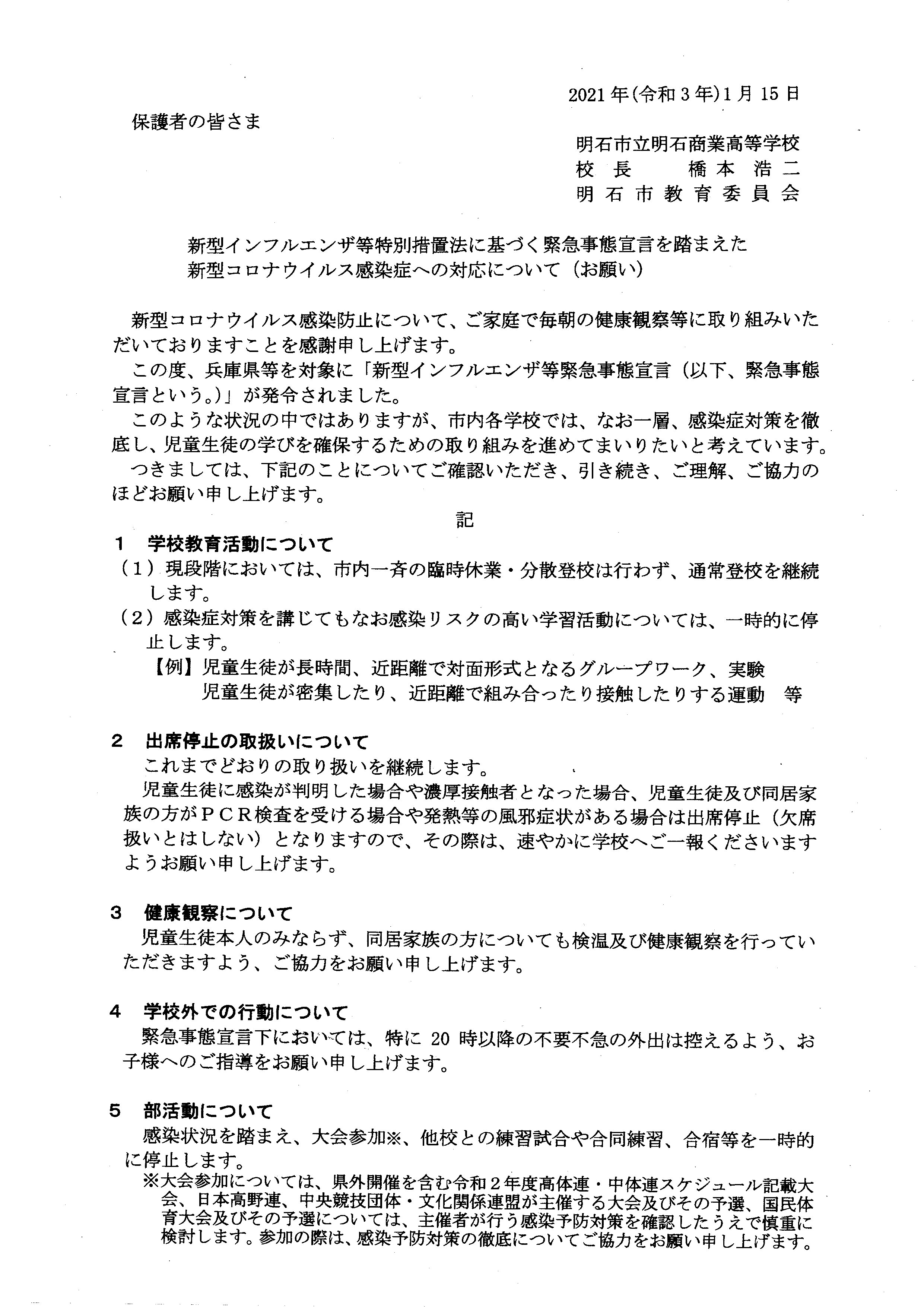 新型インフルエンザ等特別措置法に基づく緊急事態宣言を踏まえた新型コロナウイルス感染症への対応について(お願い)