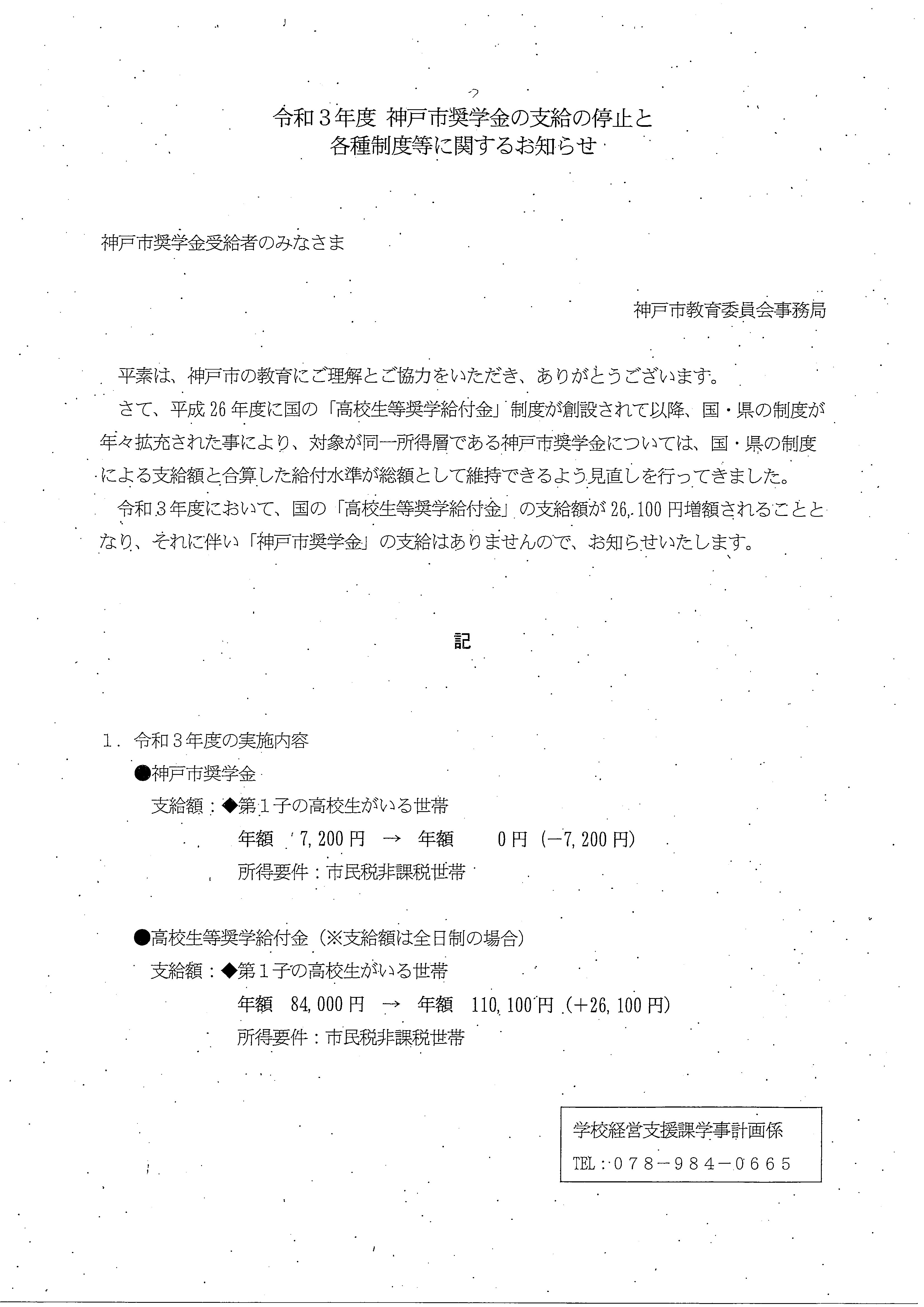 令和3年度 神戸市奨学金の支給停止と各種制度等に関するお知らせ(PDF:104KB)