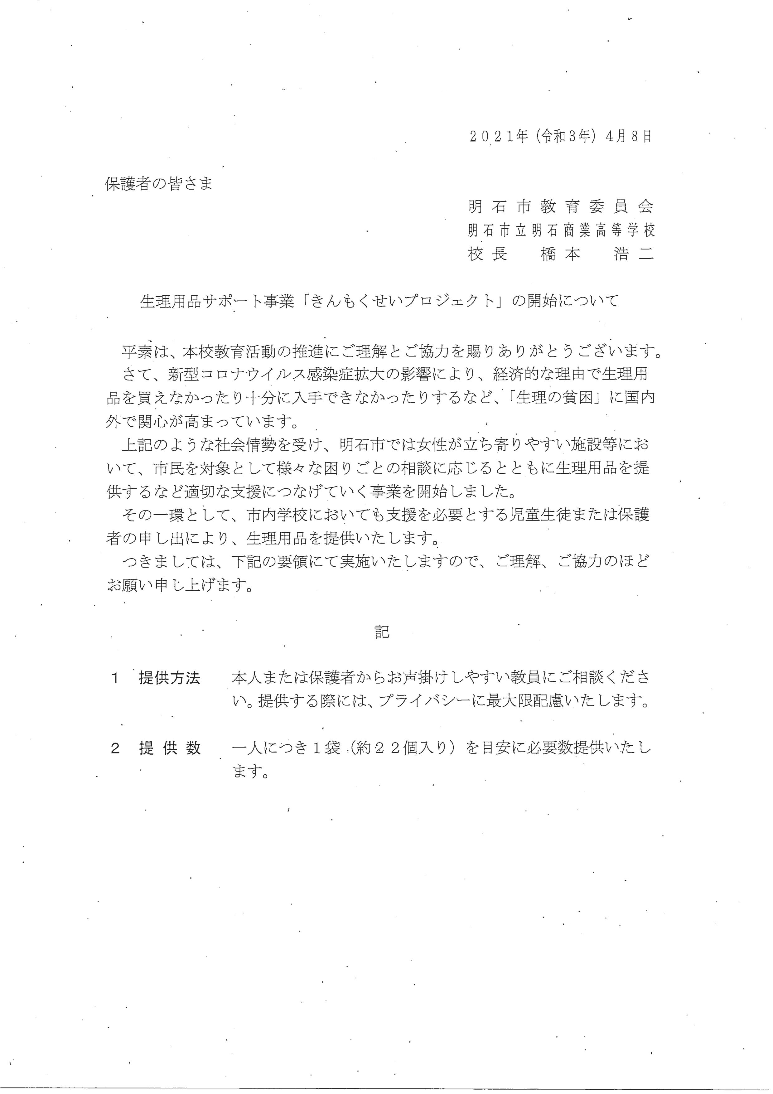 生理用品サポート事業「きんもくせいプロジェクト」の開始について