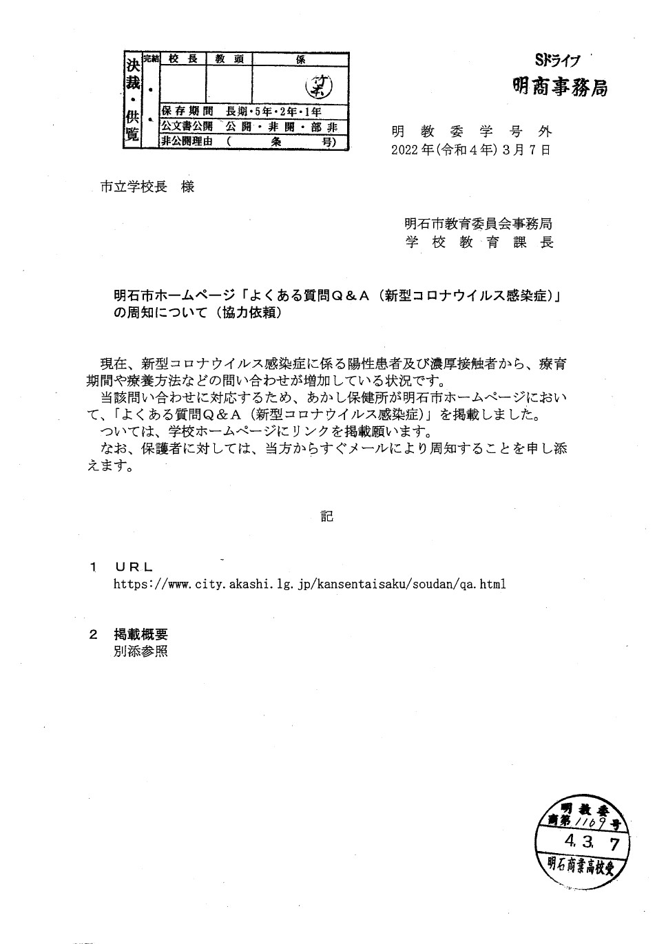 明石市 よくある質問Q&A(新型コロナウイルス感染症)案内(PDF:33KB)
