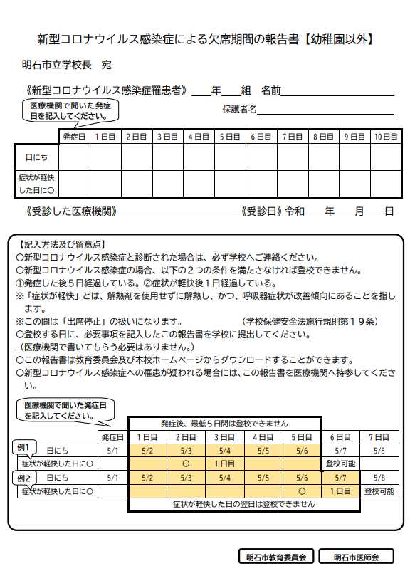 新型コロナウイルス感染症による欠席期間の報告書の使用について
