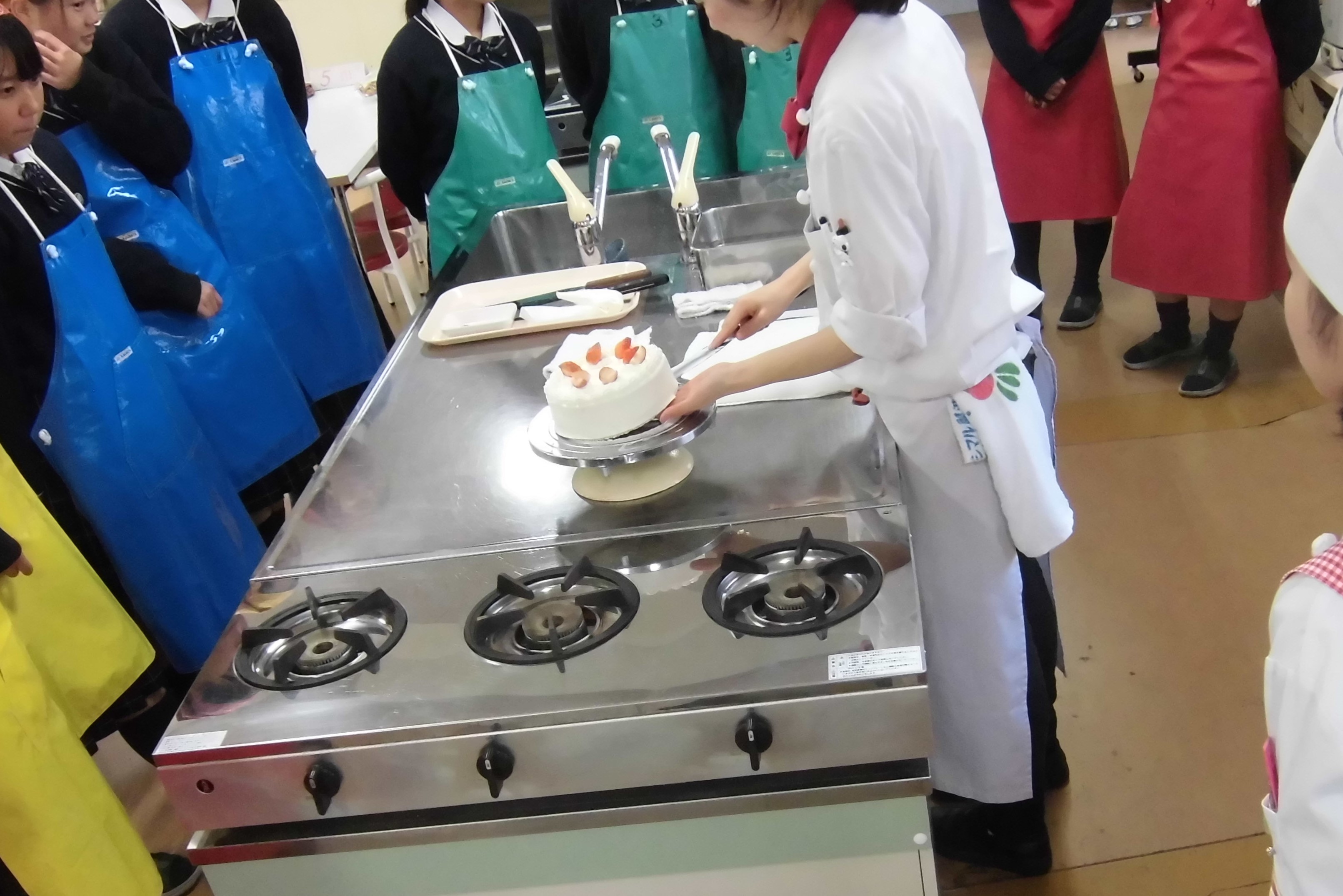3年の学校設定科目「健康の生活デザイン」でみかしほ学園の先生や学生さんからケーキデコレーションを教えていただきました。