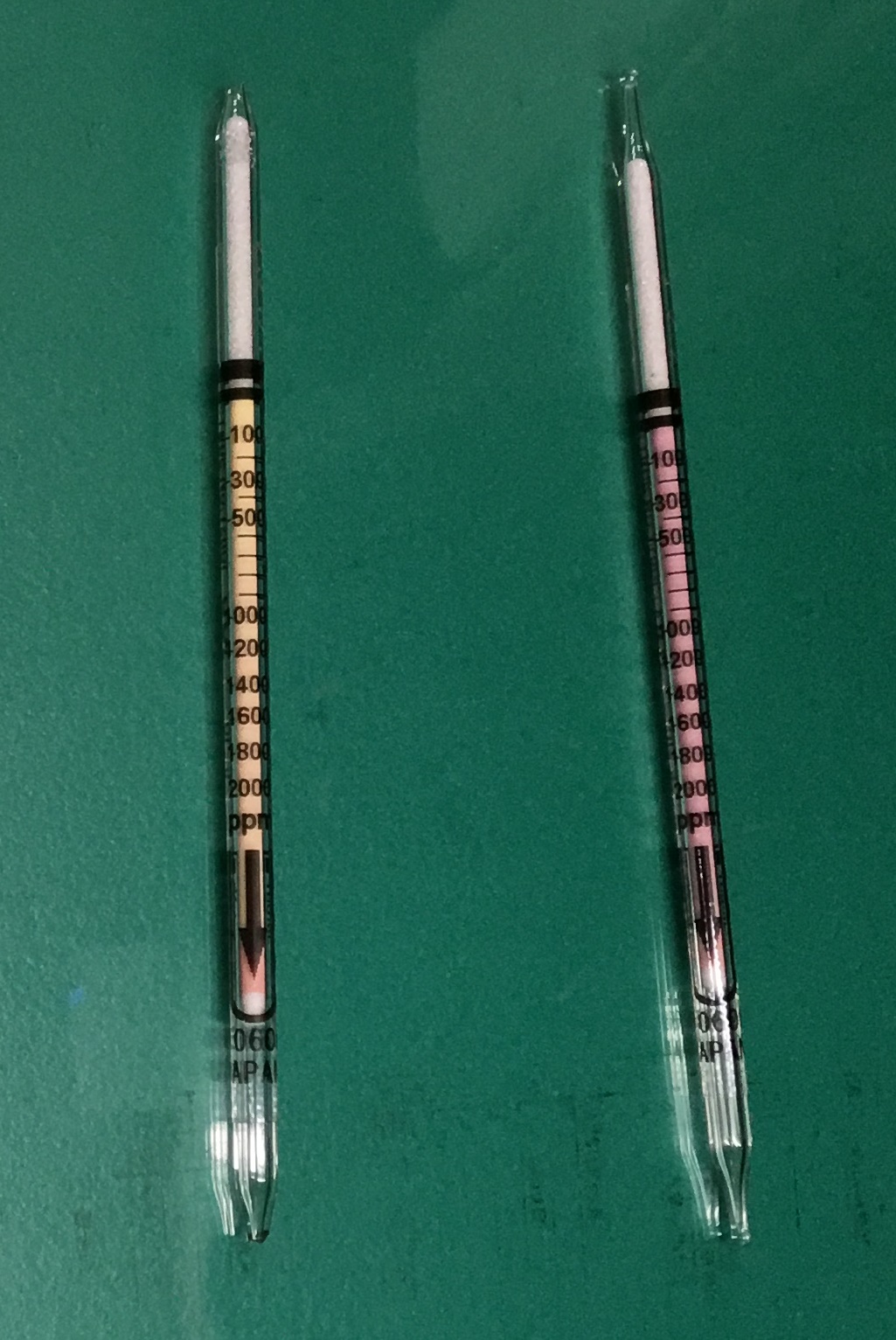 1月25日(金)13:20から、本校学校薬剤師の中村先生にお越しいただき、教室内の換気(二酸化炭素)について学校環境衛生検査を実施しました。測定教室はA棟4階の1-3HR教室と1-5HR教室、A棟3階の2-4HR教室と2-5HR教室、B棟4階の第2コンピュータ室、B棟3階第4コンピュータ室と職員室、保健室です。どの教室も、2分間の計測時間を待たずに瞬時に規定の1500ppmを上回りました。 教室内の換気が十分でないと、勉強の効率が上がらないだけでなくかぜやインフルエンザのウィルス等がまん延する原因にもなります。インフルエンザ等の感染症が流行する時期は、エアコンで室温を保つことより、定期的に窓やドアを開け換気をしましょう。 【写真は測定結果:赤が測定前、黄色は二酸化炭素濃度が高く赤から黄色に変色した検知管。どの教室も10秒足らずで黄色に変色。】 Link 学校環境衛生管理マニュアル 「学校環境衛生基準」の理論と実践[平成30年度改訂版]