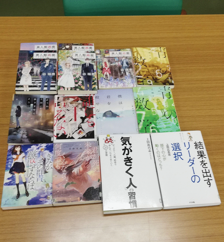 新しい本が来ました。図書室に入って、左側の棚にあります。