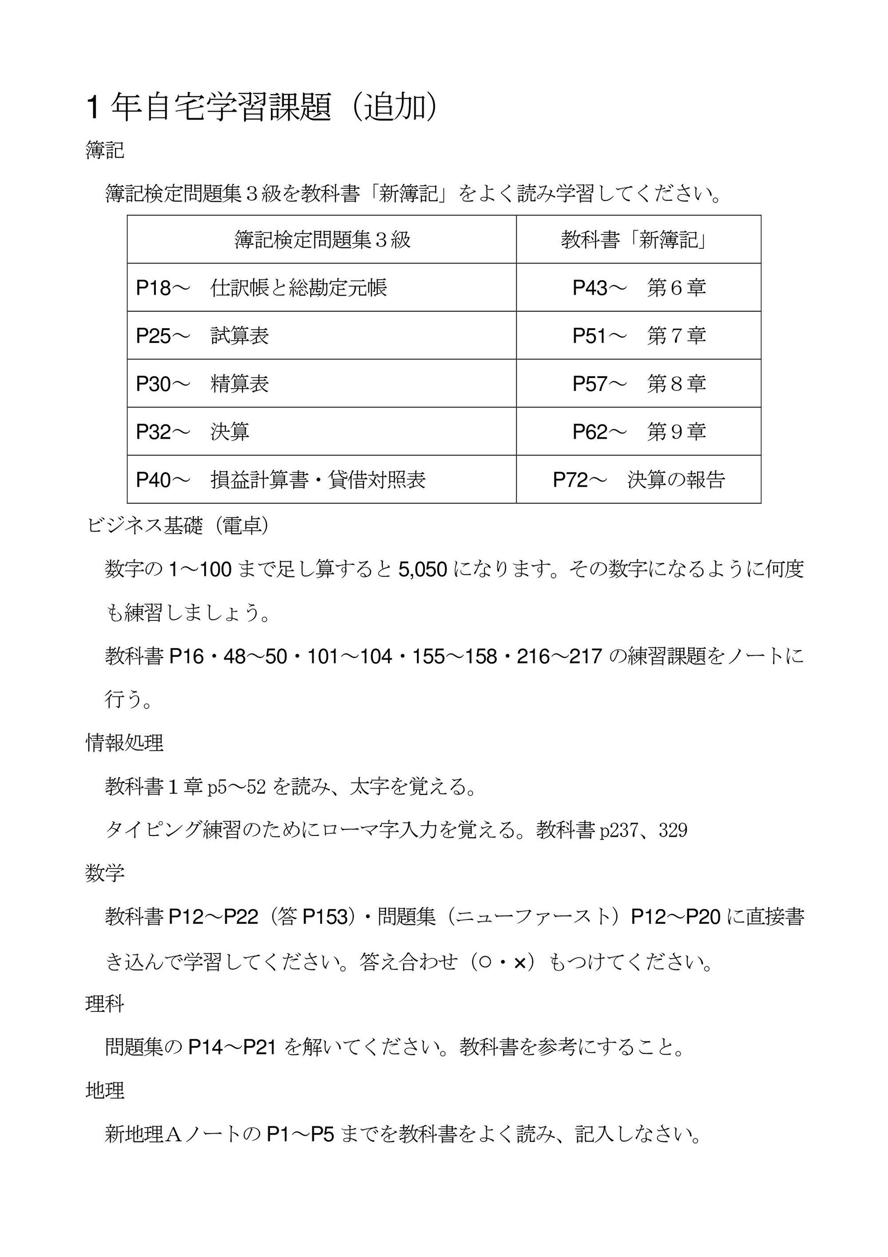 2020.04.20 1年自宅学習課題追加分(PDF :221KB)