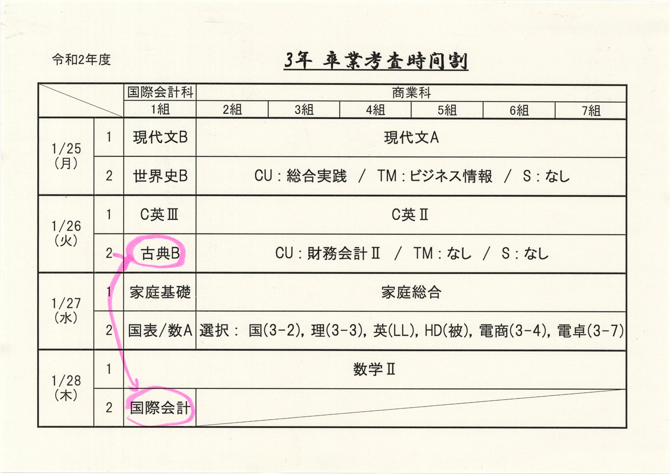 3年生の皆さんは提出物があれば必ず提出し、しっかりと学習計画を立てて、良い成績が得られるように体調管理にも気を付けて頑張って下さい。