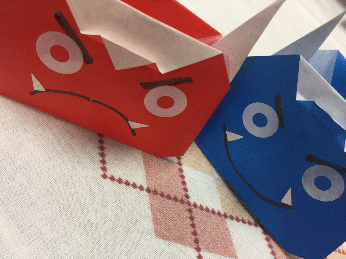 今日の2年学校設定科目「ユニバーサルデザイン」の授業で「豆まきの鬼」を折り紙で作りました。緊急事態宣言下、おうち時間に季節の伝統行事を取り入れて、家族の時間を楽しむとともに「疫病退散」で福を呼ぶ「豆まき」にピッタリの作品ができました。ちなみに、今年の節分は2月2日(火)でこの日の節分は124年ぶりだそうです。