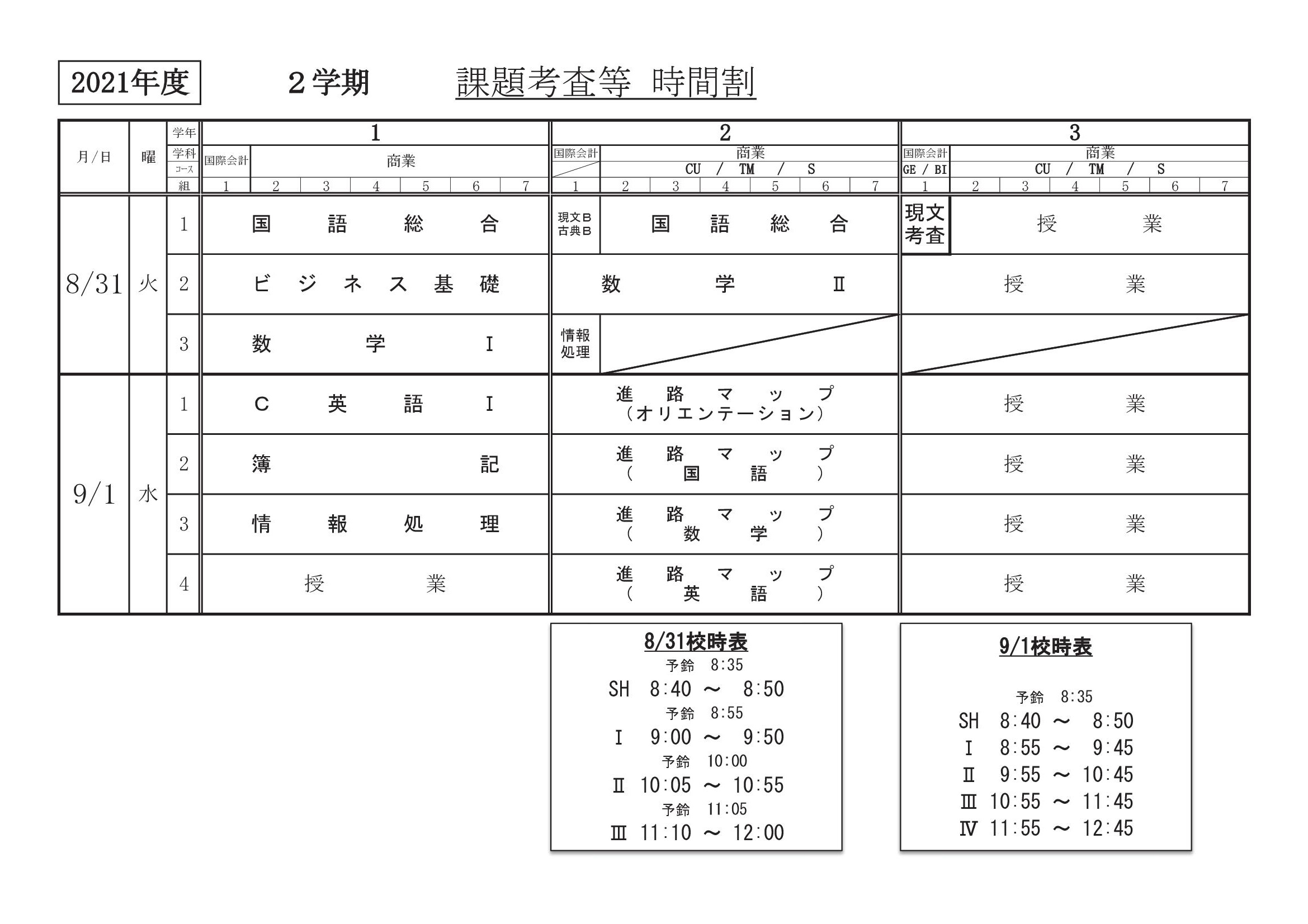 課題考査の学習計画をしっかり立てて、良い成績が得られるように体調管理にも気を付けて頑張りましょう!