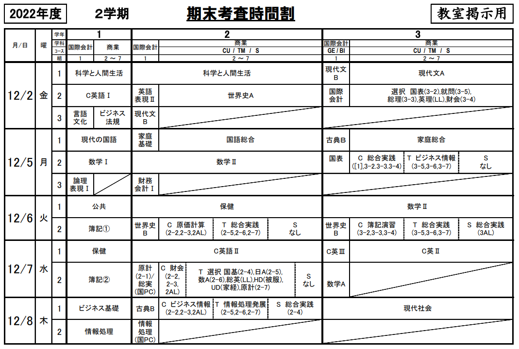 提出物があれば必ず提出し、しっかりと学習計画を立てて、良い成績が得られるように体調管理にも気を付けて頑張って下さい。