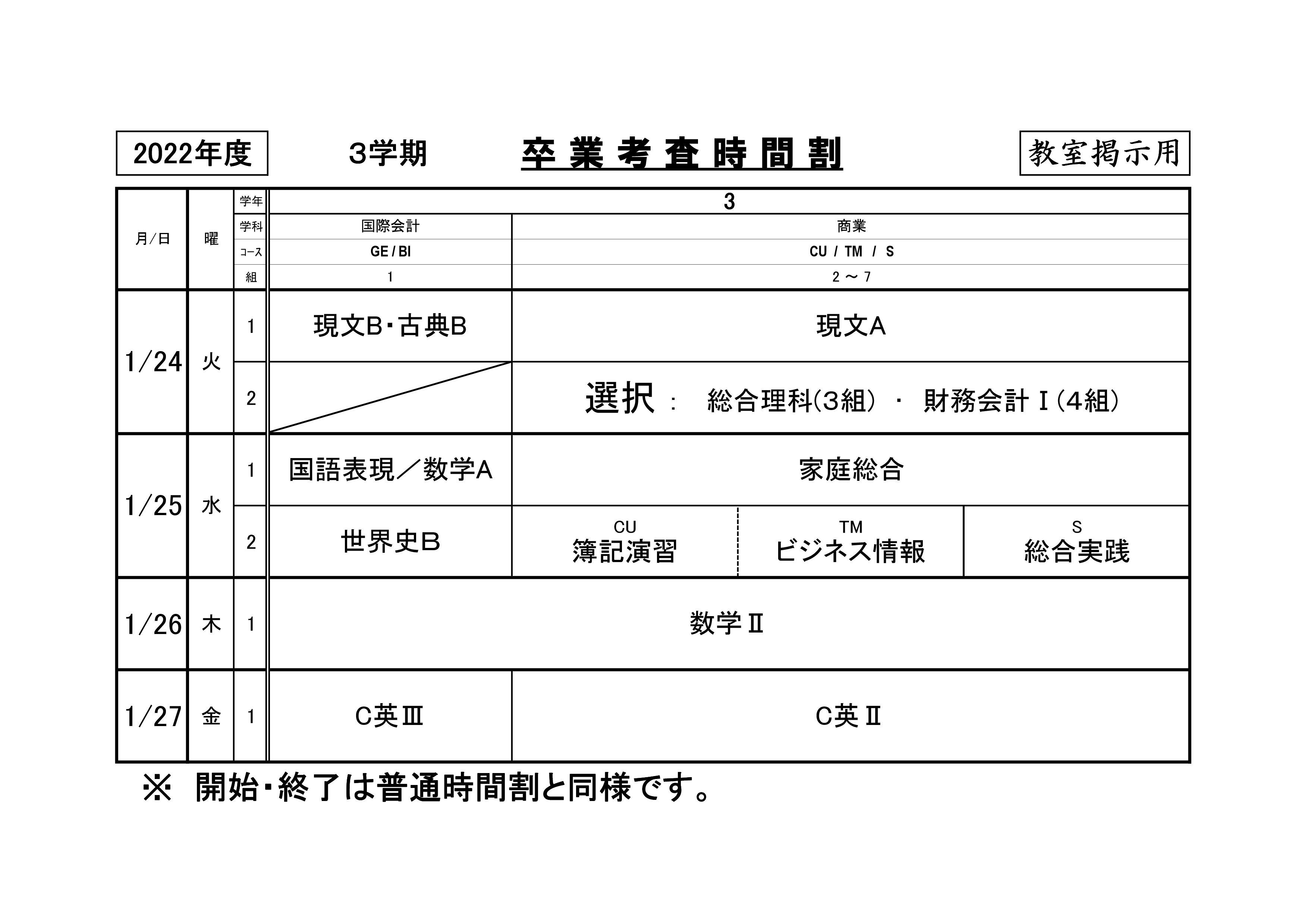 提出物があれば必ず提出し、しっかりと学習計画を立てて、良い成績が得られるように体調管理にも気を付けて頑張って下さい。